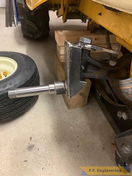 Make sure your outer weld is contained within the chamfer because you only have 1/8 of an inch between the spindle bracket and the new hub assembly.